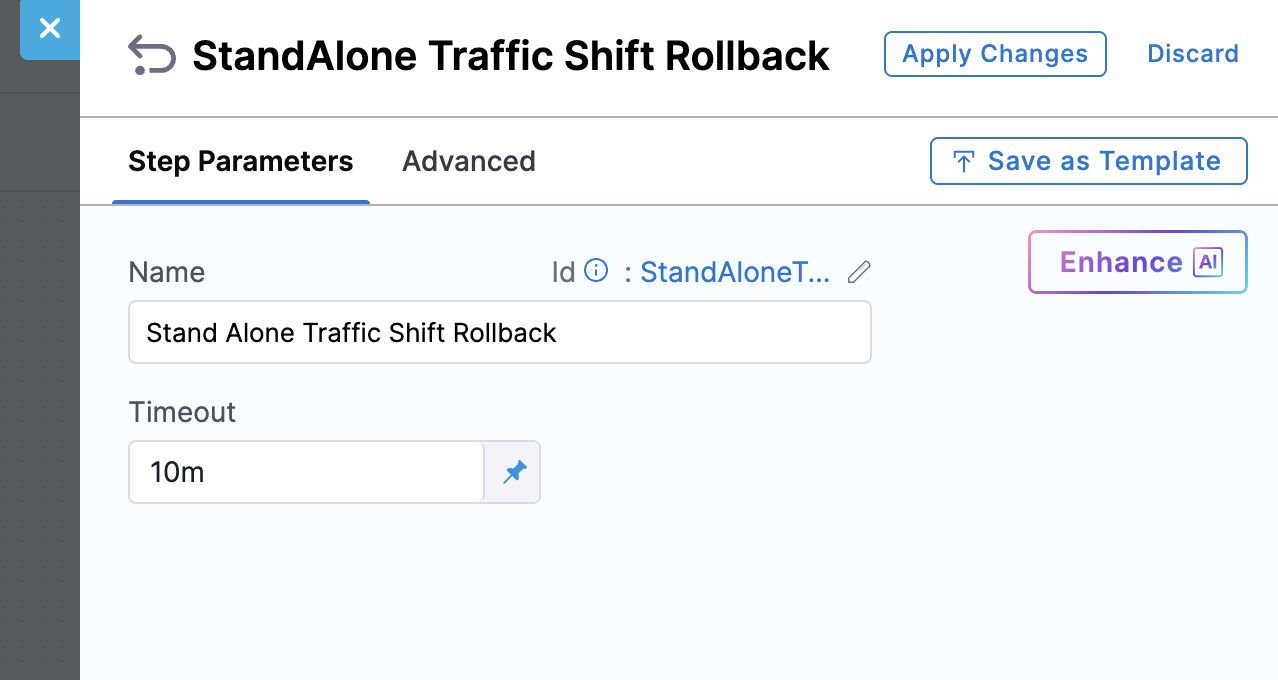 • Standalone Mode: Resets the original forward configuration for all listener rules used in the stage using the Standalone Traffic Shift Rollback step.