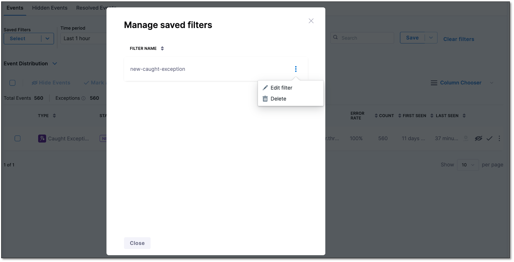 Your filter settings are added to the Saved Filters list. You can view the list by selecting the Saved Filters dropdown.