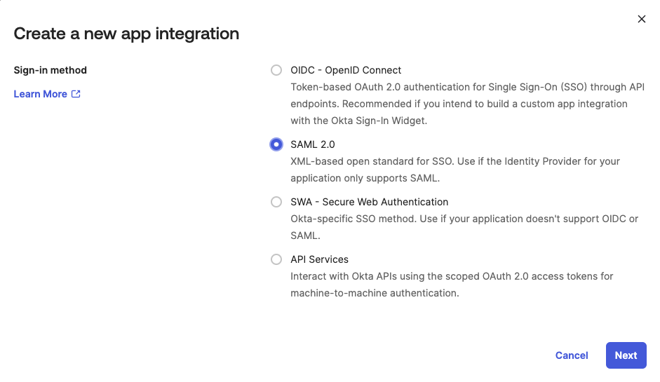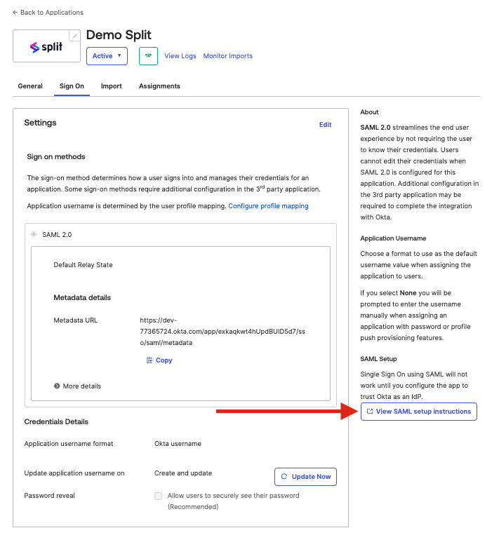Okta is a cloud-based identity management provider that you can integrate with Split’s SAML 2.0 API, allowing you to log in to Split using your single sign-on (SSO) credentials.