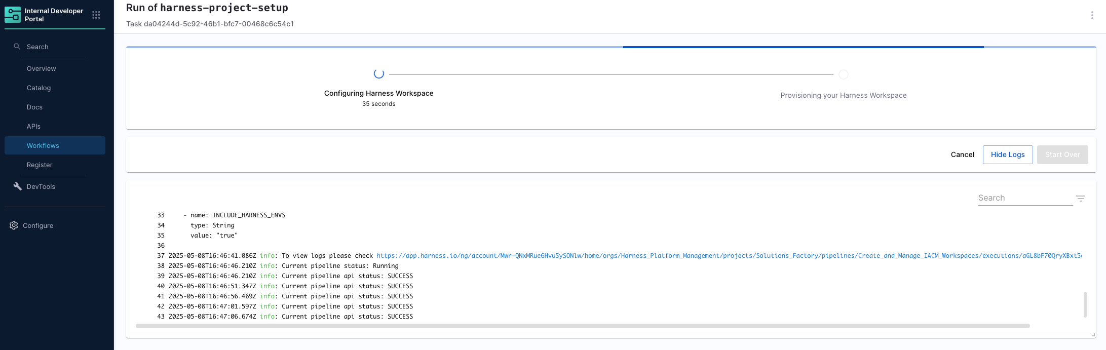 After this pipeline is done, it will kick off the Execute IACM Workspace pipeline.