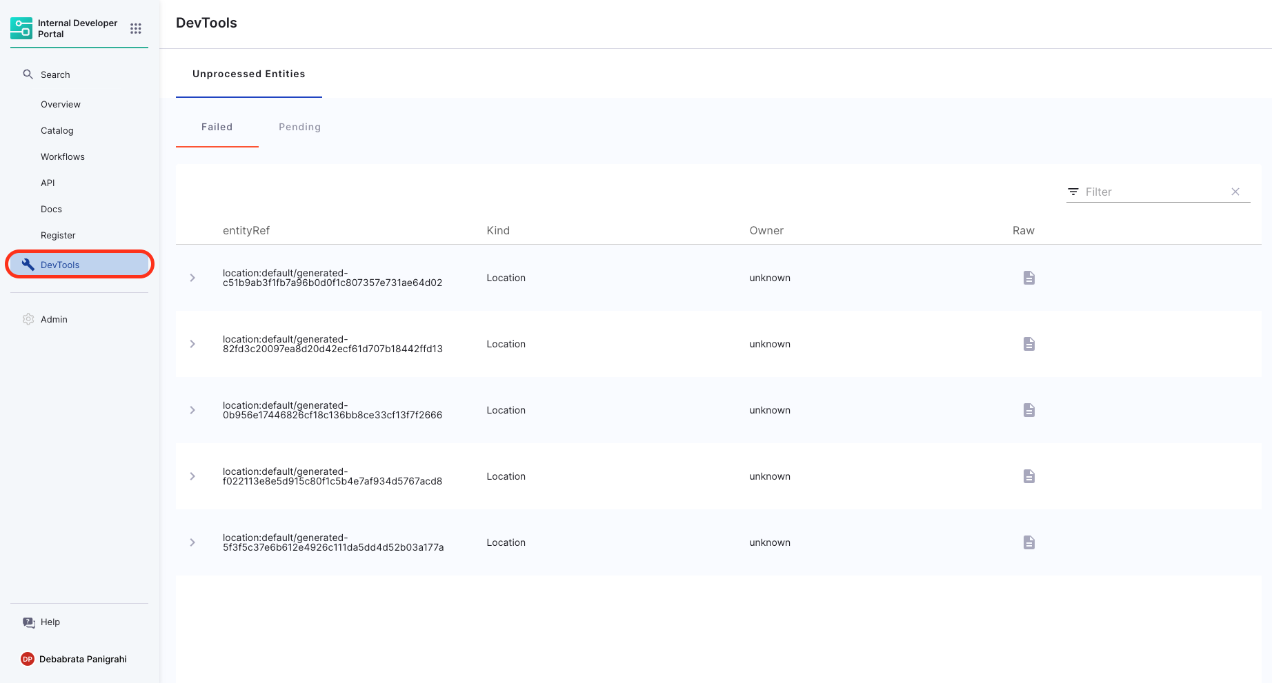 If, after registering an entity, you're unable to find the same in your catalog, check the Devtools Plugin for Unprocessed Entities. If it's under the Pending tab, wait a few minutes for registration to complete. If it's under the Failed tab. Try re-registering the entity.