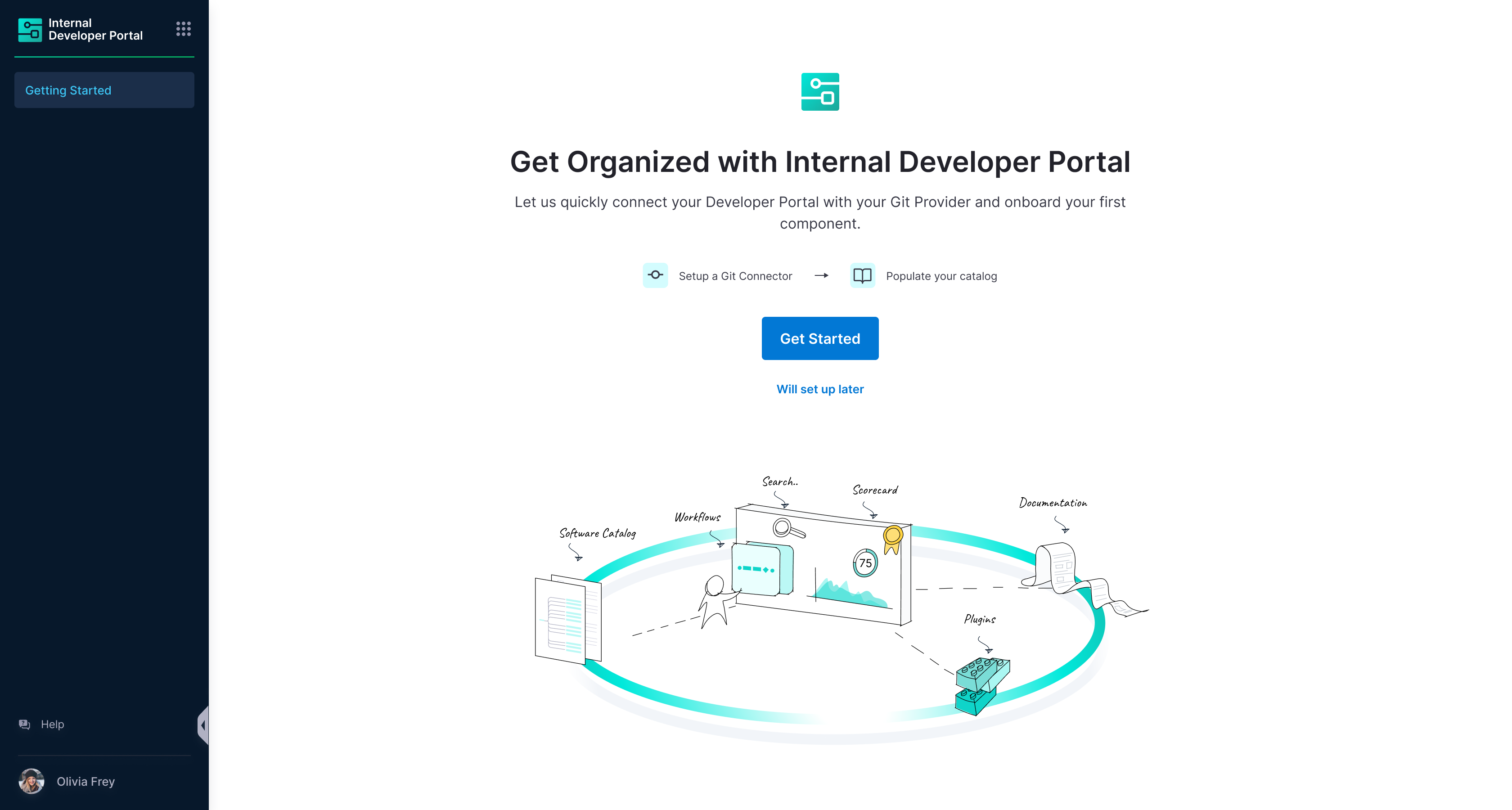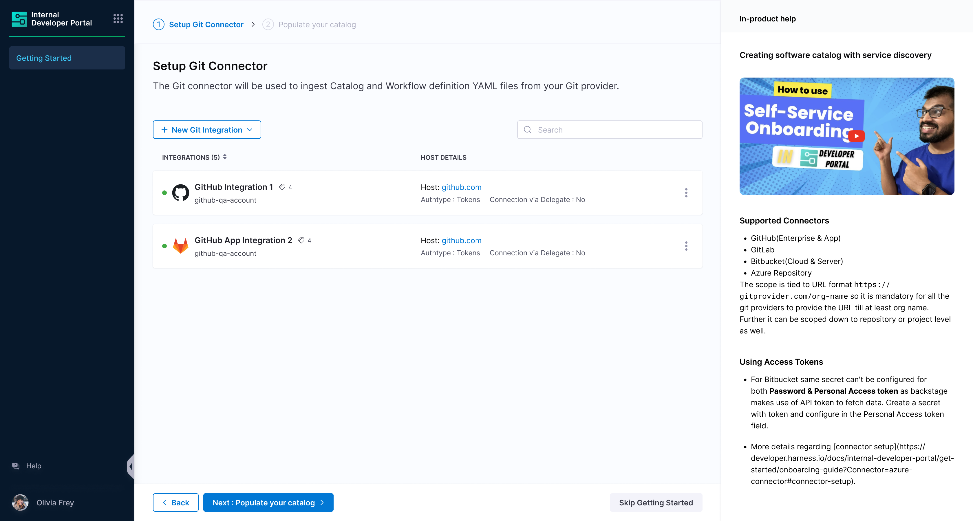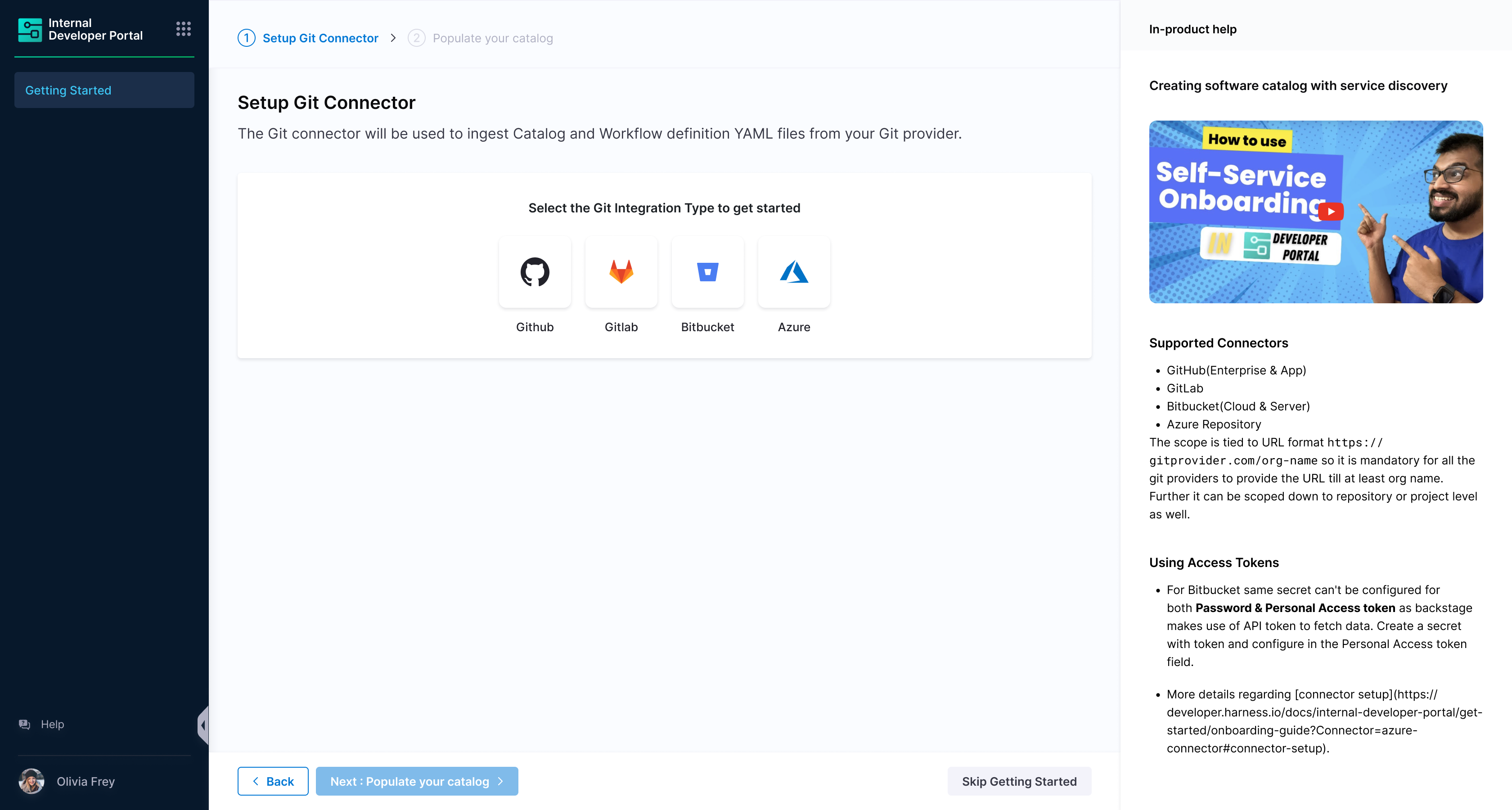 1. Now that you're on the onboarding wizard, let's get started with setting up Git connectors to onboard the software components.
