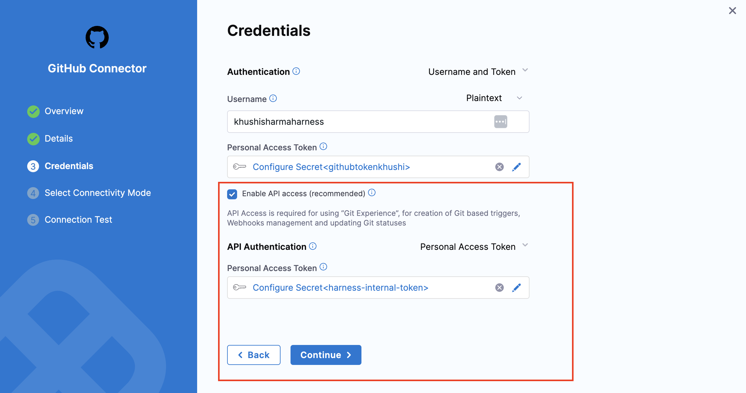 • We do not allow the creation of new connectors for Harness Code Repository.