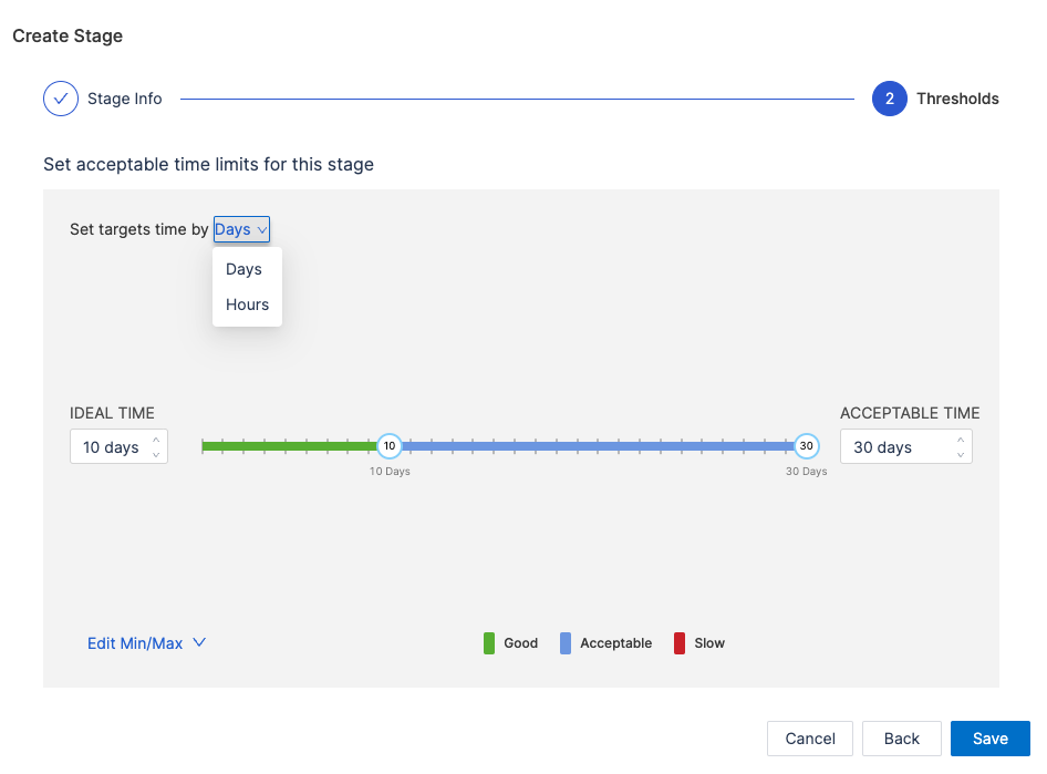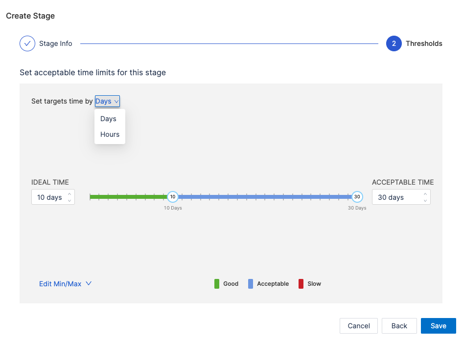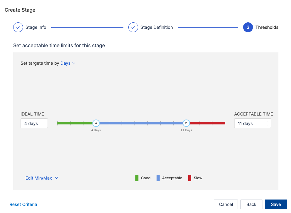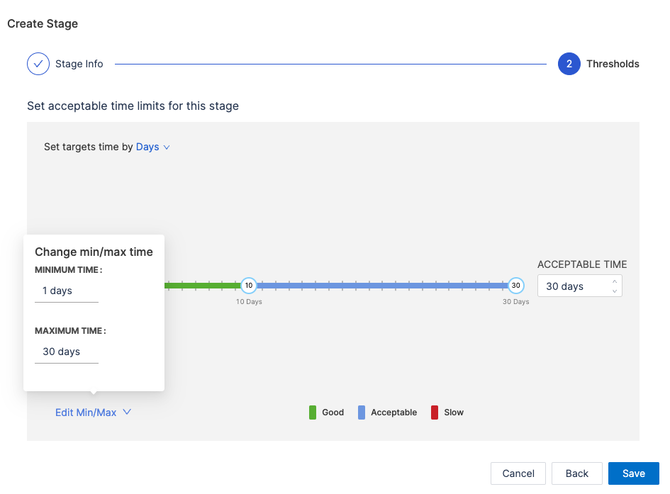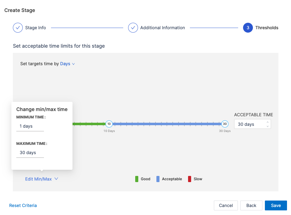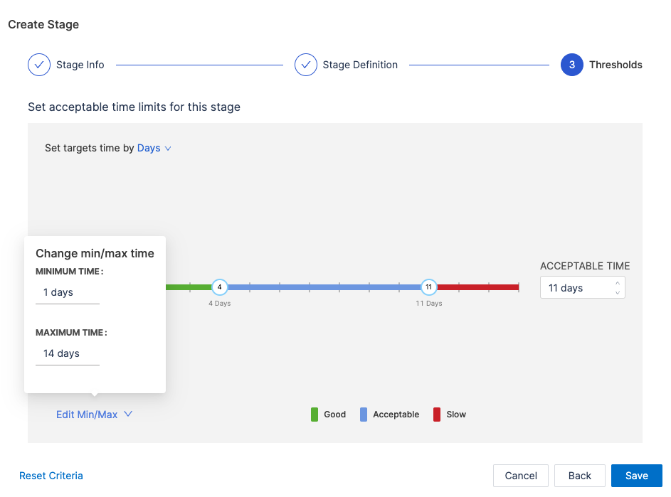 • Set acceptable time ranges for the stage, such as Ideal Time and Acceptable Time.