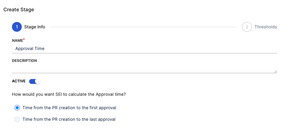 For the Approval Time stage, you can configure the Workflow to track either the first approval or the final approval, depending on the needs of your team. The PR review stages cannot be rearranged, ensuring consistency in the flow.