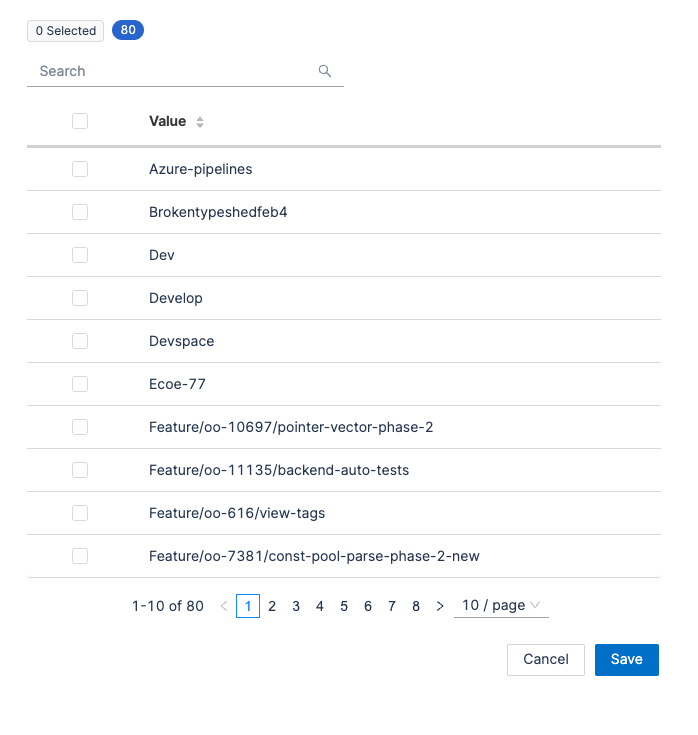 • Pull Requests to Branches: Specify values that the branches for pull requests should start with or contain.