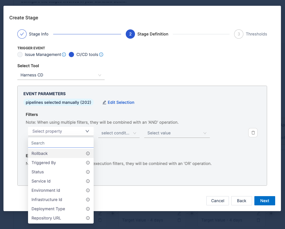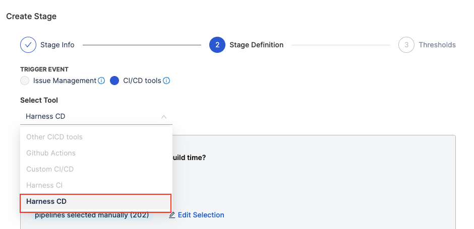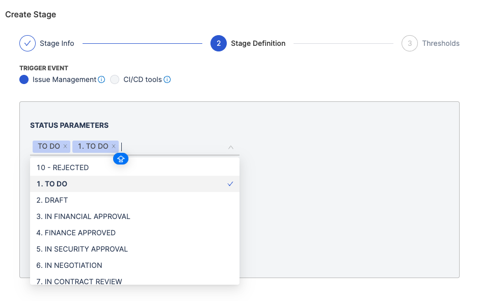 • Define the Stage Trigger Event (e.g., Issue Management) and map the stage to statuses in your issue management system.